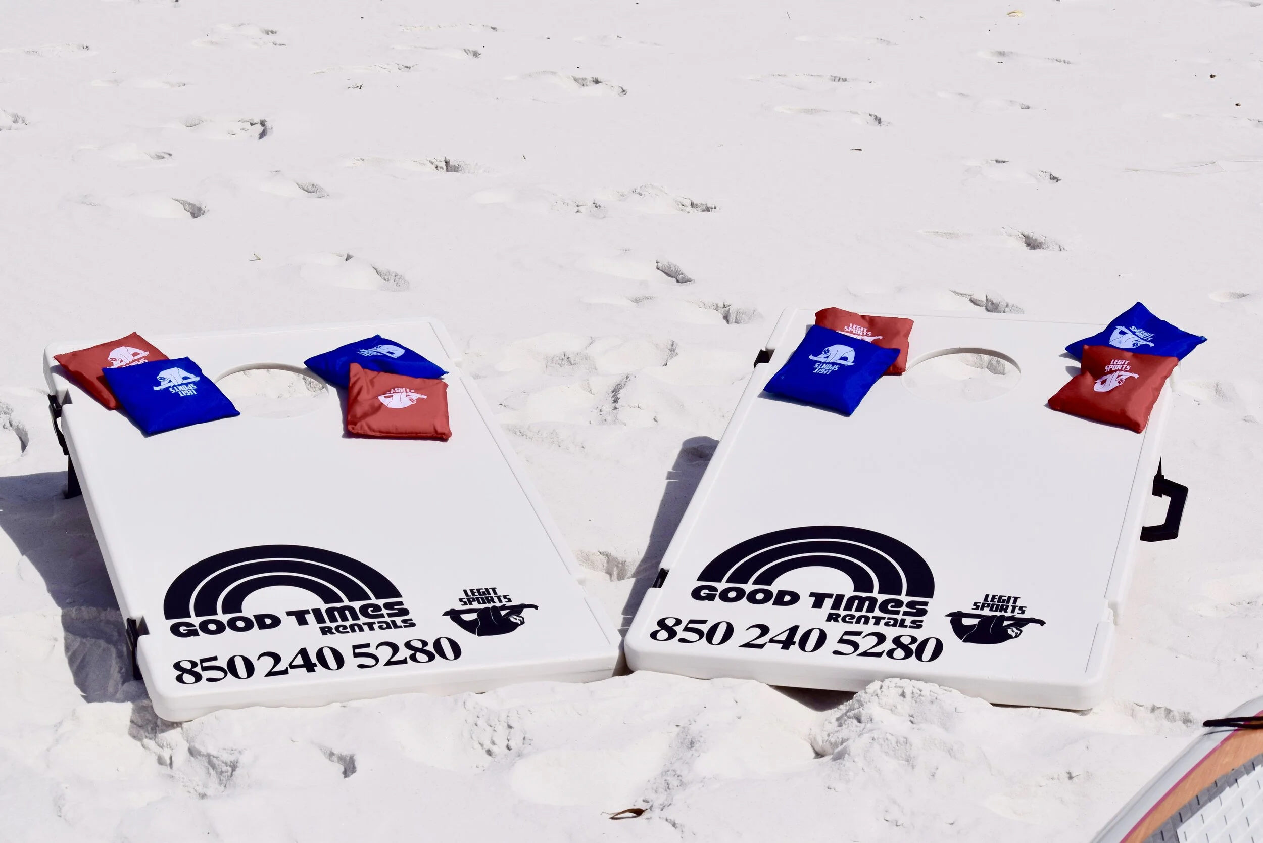 Rent a cornhole board to enjoy during your Destin or Miramar Beach vacation. We rent cornhole games by the week and provide delivery. We can deliver directly to your home or rental home. Our Cornhole boards are $85 for the week or $65 if paired with additional items.